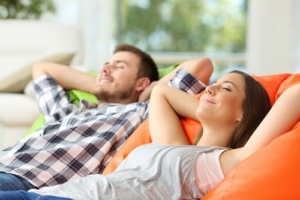 Couple or roommates relaxing at home