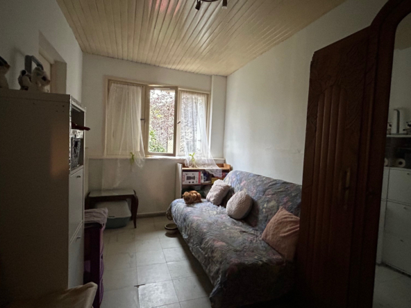 Cette maison de plain pied, proche du centre-ville et située au calme, comprend une entrée séparée, une pièce de vie de 25 m2 avec cuisine et séjour donnant sur le jardin, 2 chambres, une salle d’eau et des toilettes séparées.