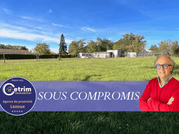 Lezoux, proche de l’accès à l’autoroute, situé dans un secteur calme, beau terrain constructible bien exposé, plat et clôturé de 1.125 m2 avec son chemin d’accès.