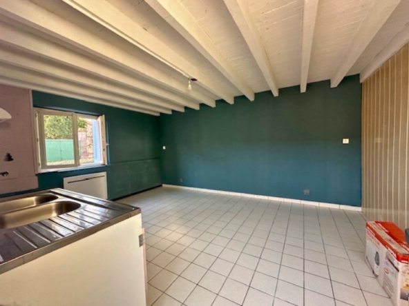 Cette maison à rénover propose une entrée donnant accés sur la cuisine, un salon et une salle d’eau avec un espace toilette fermé. À l’étage, se trouvent deux chambres avec vue dégagée, dont l’une comprenant un espace dressing en sous-bassement.