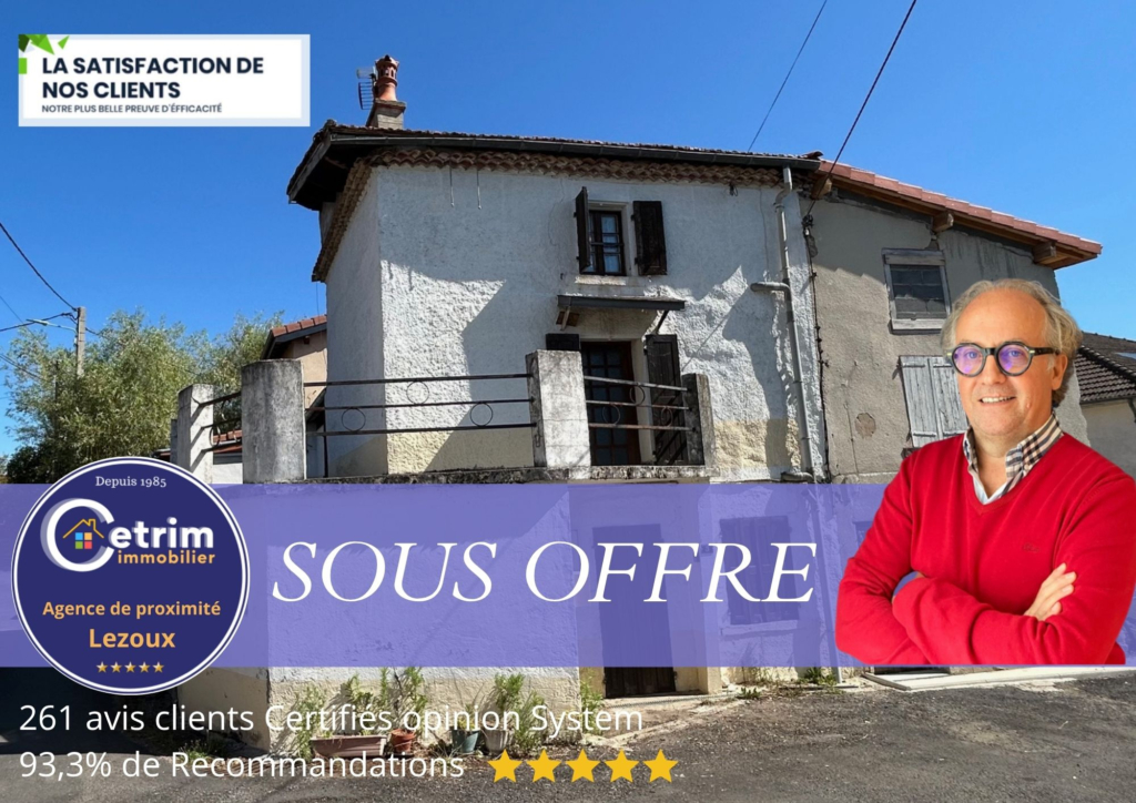 Peschadoires, entre Lezoux et Thiers, située dans un hameau, maison de 95 m2 à rénover entièrement sur 3 niveaux avec garage de 50 m2 et jardin non attenant mais constructible de 170 m2.