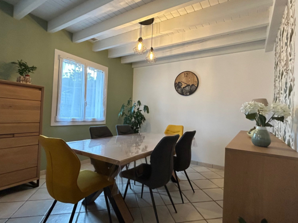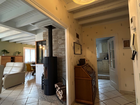 Cette maison de 1987, en parfait état et sans travaux à prévoir propose en rez de jardin, une pièce de vie lumineuse avec salle à manger et salon équipé d’un poêle à bois scandinave récent, une cuisine fonctionnelle et spacieuse entièrement équipée avec une verrière, un espace nuit comprenant 3 grandes chambres dont 2 avec placards, une salle de bains avec baignoire et douche et des toilettes séparées.